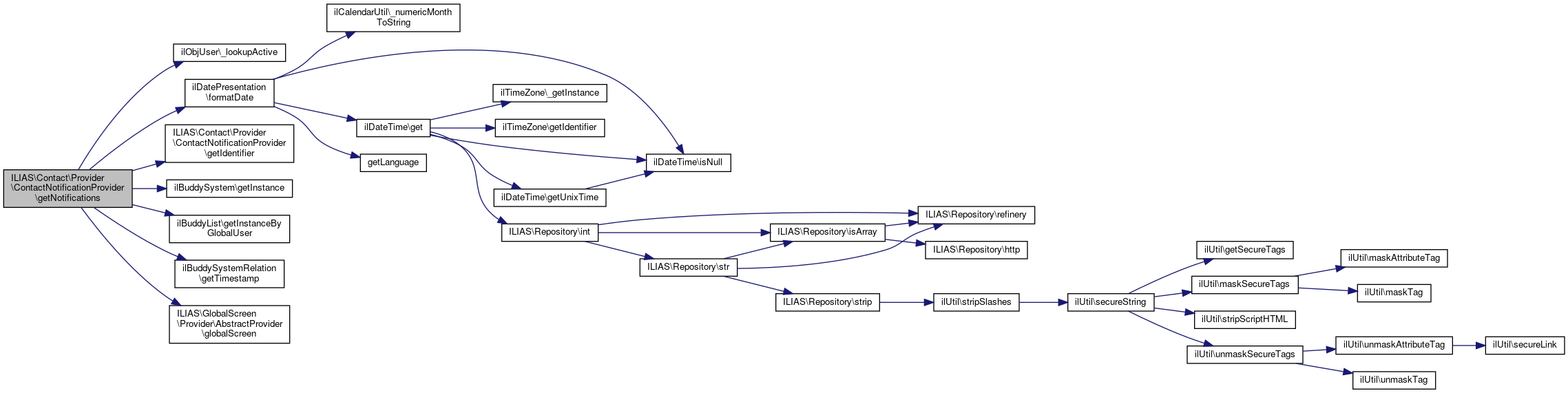 Collaboration diagram for ILIAS\Contact\Provider\ContactNotificationProvider:Public Member Functions | |