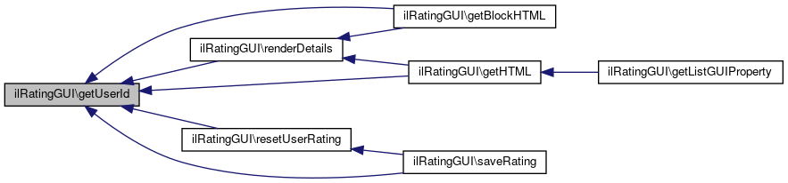 Here is the call graph for this function:| ilRatingGUI::getUserId | ( | ) |