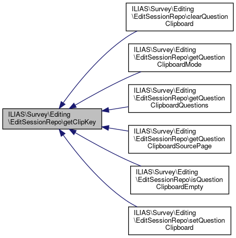 Referenced by ILIAS\Survey\Editing\EditSessionRepo\clearQuestionClipboard(), ILIAS\Survey\Editing\EditSessionRepo\getQuestionClipboardMode(), ILIAS\Survey\Editing\EditSessionRepo\getQuestionClipboardQuestions(), ILIAS\Survey\Editing\EditSessionRepo\getQuestionClipboardSourcePage(), ILIAS\Survey\Editing\EditSessionRepo\isQuestionClipboardEmpty(), and ILIAS\Survey\Editing\EditSessionRepo\setQuestionClipboard().