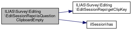 Here is the call graph for this function:| ILIAS\Survey\Editing\EditSessionRepo::isQuestionClipboardEmpty | ( | int | $ref_id | ) |