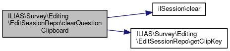 Here is the call graph for this function:| ILIAS\Survey\Editing\EditSessionRepo::clearQuestionClipboard | ( | $ref_id | ) |