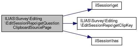 Here is the call graph for this function:| ILIAS\Survey\Editing\EditSessionRepo::getQuestionClipboardSourcePage | ( | int | $ref_id | ) |