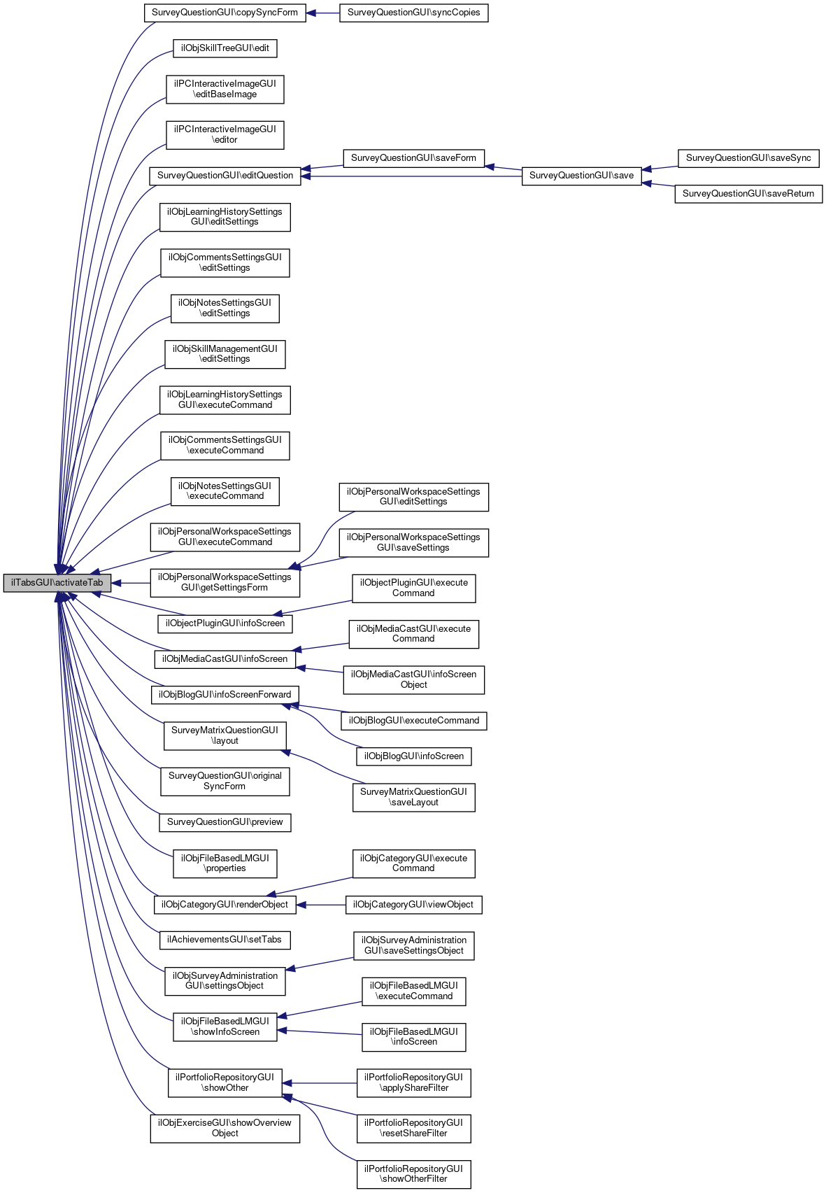 Referenced by SurveyQuestionGUI\copySyncForm(), ilObjSkillTreeGUI\edit(), ilPCInteractiveImageGUI\editBaseImage(), ilPCInteractiveImageGUI\editor(), SurveyQuestionGUI\editQuestion(), ilObjLearningHistorySettingsGUI\editSettings(), ilObjCommentsSettingsGUI\editSettings(), ilObjNotesSettingsGUI\editSettings(), ilObjSkillManagementGUI\editSettings(), ilObjLearningHistorySettingsGUI\executeCommand(), ilObjCommentsSettingsGUI\executeCommand(), ilObjNotesSettingsGUI\executeCommand(), ilObjPersonalWorkspaceSettingsGUI\executeCommand(), ilObjPersonalWorkspaceSettingsGUI\getSettingsForm(), ilObjectPluginGUI\infoScreen(), ilObjMediaCastGUI\infoScreen(), ilObjBlogGUI\infoScreenForward(), SurveyMatrixQuestionGUI\layout(), SurveyQuestionGUI\originalSyncForm(), SurveyQuestionGUI\preview(), ilObjFileBasedLMGUI\properties(), ilObjCategoryGUI\renderObject(), ilAchievementsGUI\setTabs(), ilObjSurveyAdministrationGUI\settingsObject(), ilObjFileBasedLMGUI\showInfoScreen(), ilPortfolioRepositoryGUI\showOther(), and ilObjExerciseGUI\showOverviewObject().