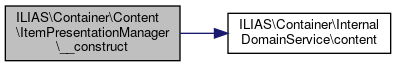 Collaboration diagram for ILIAS\Container\Content\ItemPresentationManager:Public Member Functions | |