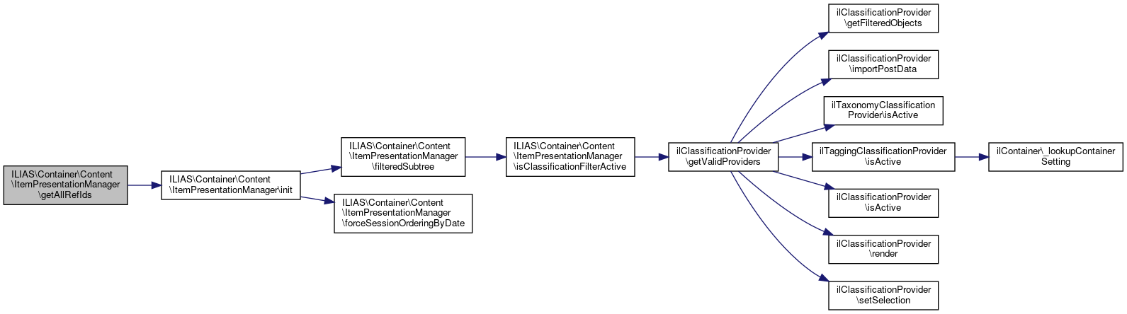 Here is the caller graph for this function:| ILIAS\Container\Content\ItemPresentationManager::getAllRefIds | ( | ) |
