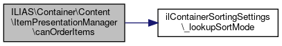Here is the call graph for this function:| ILIAS\Container\Content\ItemPresentationManager::canOrderItems | ( | ) |