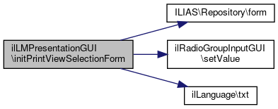 Here is the call graph for this function:| ilLMPresentationGUI::showPrintViewSelection | ( | ) |