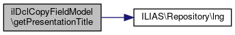 Here is the call graph for this function:| ilDclCopyFieldModel::getPresentationTitle | ( | ) |
