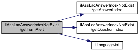 Here is the caller graph for this function:| ilAssLacAnswerIndexNotExist::getFormAlert | ( | ilLanguage | $lng | ) |