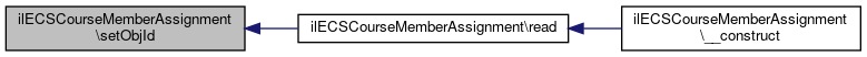 Here is the caller graph for this function:| ilECSCourseMemberAssignment::setObjId | ( | int | $a_id | ) |