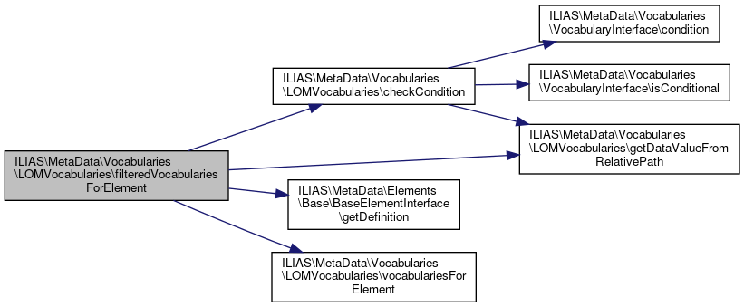 Here is the caller graph for this function:| ILIAS\MetaData\Vocabularies\LOMVocabularies::filteredVocabulariesForElement | ( | ElementInterface | $element, |