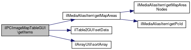 Here is the call graph for this function:| ilPCImageMapTableGUI::getItems | ( | ) |