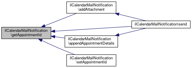 Here is the caller graph for this function:| ilCalendarMailNotification::getAppointmentId | ( | ) |