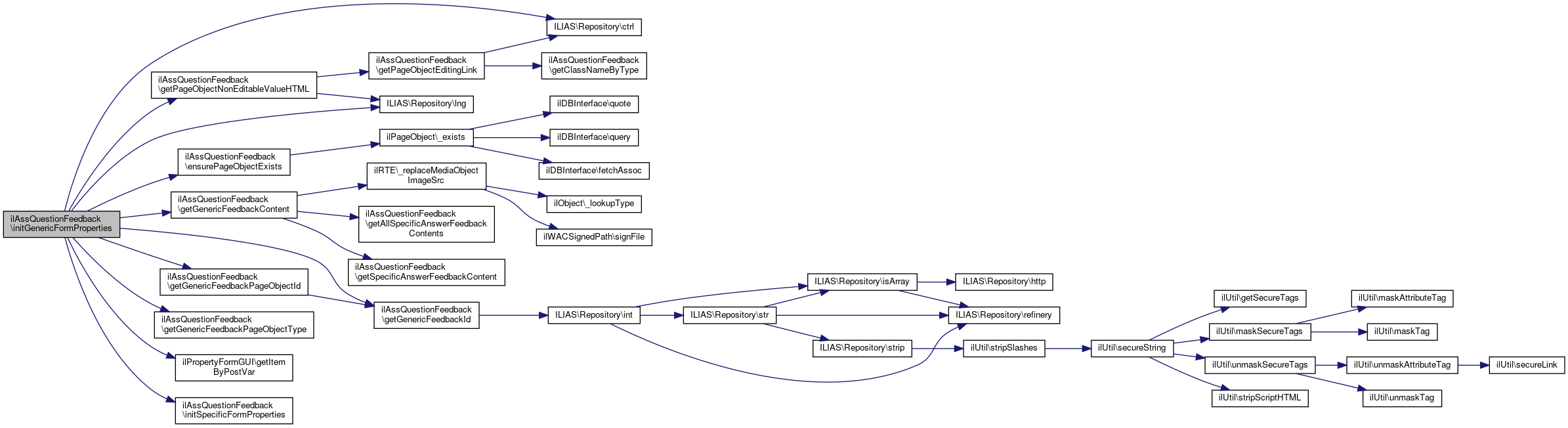 References ILIAS\Repository\ctrl(), ensurePageObjectExists(), getGenericFeedbackContent(), getGenericFeedbackId(), getGenericFeedbackPageObjectId(), getGenericFeedbackPageObjectType(), ilPropertyFormGUI\getItemByPostVar(), getPageObjectNonEditableValueHTML(), initSpecificFormProperties(), and ILIAS\Repository\lng().