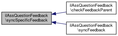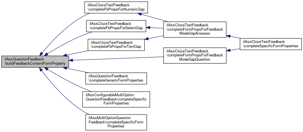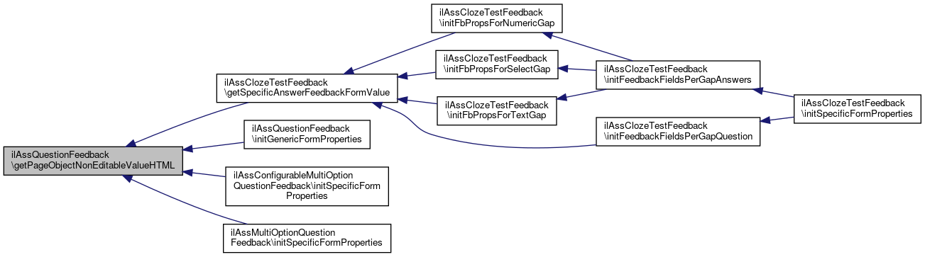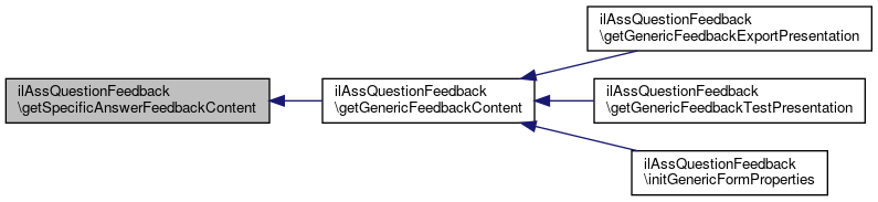 Referenced by ilAssMultiOptionQuestionFeedback\deleteSpecificAnswerFeedbacks(), ilAssClozeTestFeedback\deleteSpecificAnswerFeedbacksByIds(), ilAssMultiOptionQuestionFeedback\duplicateSpecificFeedback(), ilAssMultiOptionQuestionFeedback\getAllSpecificAnswerPageEditorFeedbackContents(), ilAssMultiOptionQuestionFeedback\getSpecificAnswerFeedbackExportPresentation(), ilAssClozeTestFeedback\getSpecificAnswerFeedbackFormValue(), ilAssMultiOptionQuestionFeedback\getSpecificAnswerFeedbackTestPresentation(), ilAssMultiOptionQuestionFeedback\importSpecificAnswerFeedback(), ilAssConfigurableMultiOptionQuestionFeedback\initSpecificFormProperties(), ilAssMultiOptionQuestionFeedback\initSpecificFormProperties(), and ilAssClozeTestFeedback\isSpecificAnswerFeedbackAvailable().