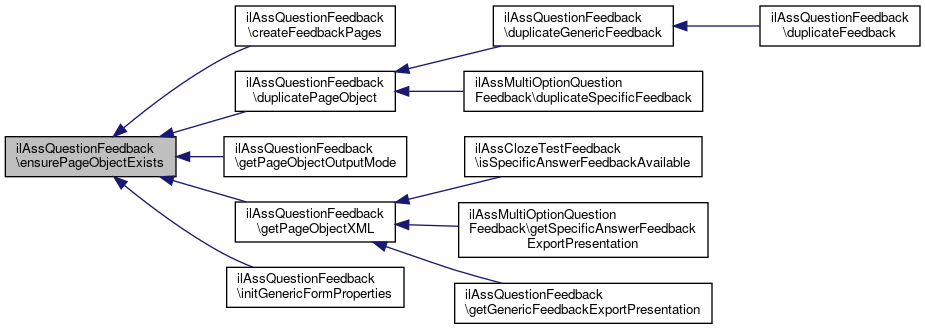 Referenced by ensurePageObjectDeleted(), ilAssQuestionFeedbackPageObjectCommandForwarder\ensurePageObjectExists(), ensurePageObjectExists(), and ilAssQuestionList\hasFeedback().
