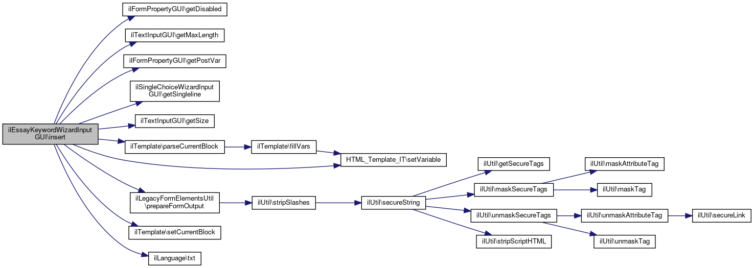 Here is the call graph for this function:| ilEssayKeywordWizardInputGUI::insert | ( | ilTemplate | $a_tpl | ) |