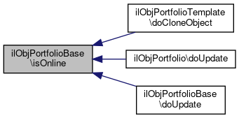 Here is the caller graph for this function:| ilObjPortfolioBase::isOnline | ( | ) |