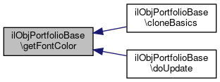 Here is the caller graph for this function:| ilObjPortfolioBase::getFontColor | ( | ) |