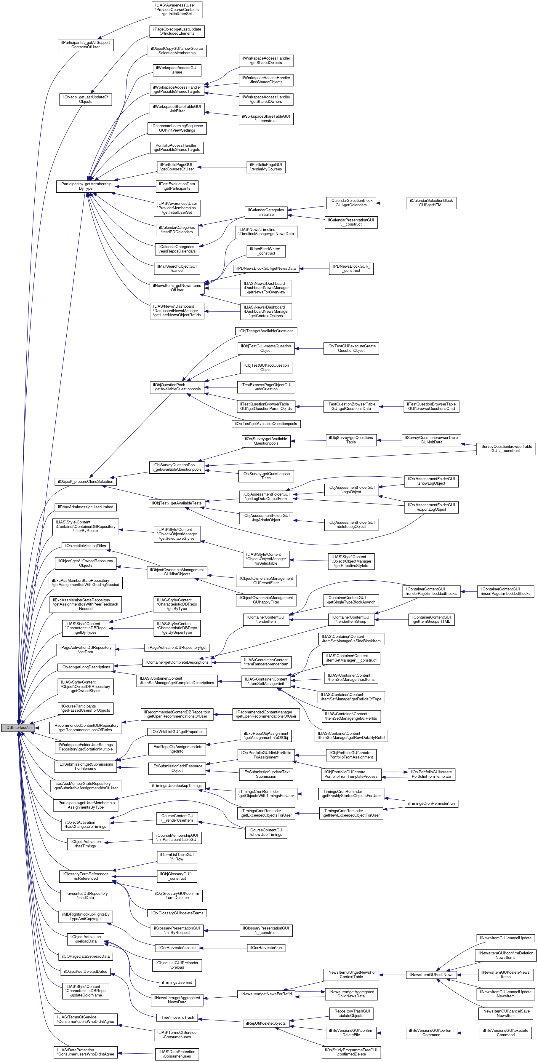 Referenced by ilObjUser\_checkExternalAuthAccount(), ilPageObject\_isScheduledActivation(), ilPageObject\_lookupActivationData(), ilPageObject\_lookupActive(), ilFavouritesDBRepository\add(), ilBookingPrefBasedBookGatewayRepository\checkProcessHash(), ilMaterializedPathTree\createFromParentRelation(), ilMaterializedPathTree\createMaterializedPath(), ilWorkspaceTree\exists(), ILIAS\Style\Content\CharacteristicDBRepo\exists(), ILIAS\Survey\Code\CodeDBRepo\exists(), ILIAS\Notes\Export\UserImageExporter\exportUserImagesForRepObjId(), ILIAS\Style\Content\Container\ContainerDBRepository\filterByReuse(), ILIAS\Container\Content\Filter\MetadataDBRepo\filterObjIdsByCopyright(), ILIAS\Container\Content\Filter\MetadataDBRepo\filterObjIdsByDefaultCopyright(), ILIAS\Container\Content\Filter\MemberDBRepo\filterObjIdsByTutorialSupport(), ILIAS\Container\Content\Filter\ObjectDBRepo\filterObjIdsByType(), ilLMMenuEditor\fixImportMenuItems(), ILIAS\Survey\Settings\SettingsDBRepository\getAccessSettings(), ILIAS\Survey\Code\CodeDBRepo\getAll(), ILIAS\Portfolio\Administration\PortfolioRoleAssignmentDBRepository\getAllAssignmentData(), ILIAS\Survey\Code\CodeDBRepo\getAllData(), ILIAS\Survey\Participants\InvitationsDBRepository\getAllForSurvey(), ILIAS\Survey\Participants\InvitationsDBRepository\getAllForUser(), ILIAS\Survey\Survey360\AppraiseeDBRepository\getAppraiseesForRater(), ilExcAssMemberStateRepository\getAssignmentIdsWithGradingNeeded(), ilExcAssMemberStateRepository\getAssignmentIdsWithPeerFeedbackNeeded(), ILIAS\Exercise\Assignment\Mandatory\RandomAssignmentsDBRepository\getAssignmentsOfUser(), ilBadgeAssignment\getBadgesForUser(), ILIAS\Survey\Code\CodeDBRepo\getByCodeId(), ILIAS\Notes\NoteDBRepository\getById(), ILIAS\Style\Content\CharacteristicDBRepo\getByKey(), ILIAS\Style\Content\CharacteristicDBRepo\getByTypes(), ILIAS\Survey\Code\CodeDBRepo\getByUserKey(), ILIAS\Survey\Survey360\AppraiseeDBRepository\getClosedAppraiseesForSurveys(), ILIAS\Survey\Execution\RunDBRepository\getCurrentRunId(), ilPageActivationDBRepository\getData(), ilRecommendedContentDBRepository\getDeclinedUserObjectRecommendations(), ilExcMemberRepository\getExerciseIdsOfUser(), ilContainerFilterFieldData\getFilterSetForRefId(), ILIAS\Survey\Execution\RunDBRepository\getFinishedAppraiseesForRater(), ILIAS\Survey\Execution\RunDBRepository\getFinishedSurveysOfUser(), ilPageObject\getHistoryEntry(), ILIAS\COPage\History\HistoryDBRepository\getHistoryNumbersOlderEqualThanNr(), ilBadgeAssignment\getLatestTimestamp(), ILIAS\COPage\History\HistoryDBRepository\getMaxDeletableNr(), SurveySingleChoiceQuestion\getMaxSumScore(), SurveyMultipleChoiceQuestion\getMaxSumScore(), SurveyMatrixQuestion\getMaxSumScore(), ilMediaItem\getMediaItemsForUploadHash(), ilBadgeAssignment\getNewCounter(), ILIAS\Survey\Settings\SettingsDBRepository\getObjIdsForSurveyIds(), ilFileObjectRBACDatabaseSteps\getOpsID(), ILIAS\Style\Content\Object\ObjectDBRepository\getOwnedStyles(), ilPageObject\getPageContributors(), ilSkillTreeDBRepository\getParentNodeIdForNodeId(), ilPageObject\getParentObjectContributors(), ilBookingPrefBasedBookGatewayRepository\getPoolsWithOverdueBooking(), ilObjBookingPool\getPoolsWithReminders(), ilBookingPreferencesDBRepository\getPreferences(), ilBookingPreferencesDBRepository\getPreferencesOfUser(), ILIAS\BookingManager\BookingProcess\SelectedObjectsDBRepository\getSelectedObjects(), ilWorkspaceFolderUserSettingsRepository\getSortation(), ilWorkspaceFolderUserSettingsRepository\getSortationMultiple(), ILIAS\Survey\Execution\RunDBRepository\getState(), ilExcAssMemberStateRepository\getSubmitableAssignmentIdsOfUser(), ILIAS\Portfolio\Administration\PortfolioRoleAssignmentDBRepository\getTemplatesForRoles(), ILIAS\Skill\Profile\SkillProfileDBRepository\getTreeId(), ilSkillTreeDBRepository\getTreeIdForNodeId(), ILIAS\Survey\Survey360\AppraiseeDBRepository\getUnclosedSurveysForAppraisee(), ILIAS\Survey\Execution\RunDBRepository\getUnfinishedSurveysOfUser(), ilObjUseBookDBRepository\getUsedBookingPools(), ILIAS\Notes\NoteDBRepository\getUserCount(), ilRecommendedContentDBRepository\getUserObjectRecommendations(), ilUserProfilePromptDataGateway\getUserPrompt(), ILIAS\Exercise\Submission\SubmissionDBRepository\getUserSubmissionState(), ILIAS\Survey\Settings\SettingsDBRepository\hasEnded(), ilBookingPrefBasedBookGatewayRepository\hasRun(), ilRecommendedContentDBRepository\ifExistsObjectRecommendation(), ilFavouritesDBRepository\ifIsFavourite(), ilSkillTree\initChildsData(), ilExAssignment\instructionFileOrderGetMax(), ILIAS\Blog\ReadingTime\ReadingTimeDBRepo\isActivated(), ILIAS\Style\Content\CharacteristicDBRepo\isOutdated(), ILIAS\Style\Content\Object\ObjectDBRepository\isOwned(), ILIAS\BookingManager\Objects\ObjectsDBRepository\loadDataOfPool(), ilBookingObject\lookupPoolId(), ilBookingObject\lookupTitle(), ILIAS\Style\Content\Container\ContainerDBRepository\readReuse(), ILIAS\Style\Content\CharacteristicDBRepo\replaceParameter(), ILIAS\BookingManager\Setup\ilBookingManager8HotfixDBUpdateSteps\step_1(), ILIAS\Notes\Setup\ilNotesDBUpdateSteps\step_3(), ILIAS\MediaObjects\Setup\ilMediaObjectsDBUpdateSteps\step_3(), ILIAS\Wiki\Setup\ilWikiDBUpdateSteps\step_6(), and ILIAS\Style\Content\CharacteristicDBRepo\updateColorName().