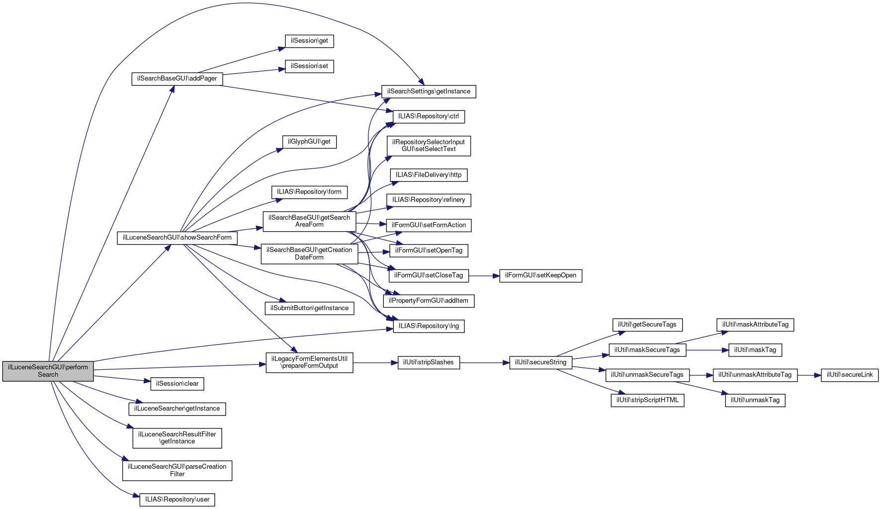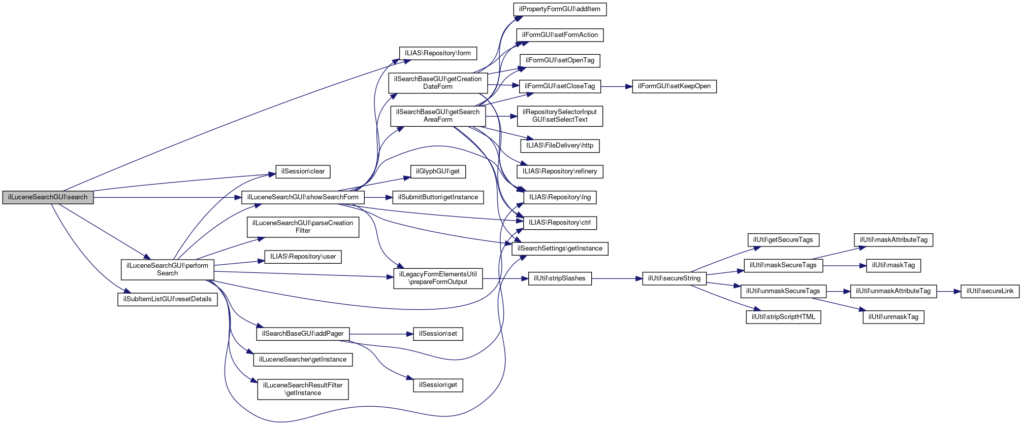 References ilSearchBaseGUI\addPager(), ilLuceneSearcher\getInstance(), ilLuceneSearchResultFilter\getInstance(), ILIAS\Repository\lng(), ilLuceneQueryParser\parse(), ilLegacyFormElementsUtil\prepareFormOutput(), showSearchForm(), and ILIAS\Repository\user().