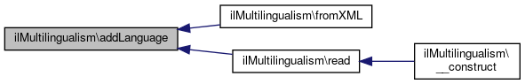 Here is the call graph for this function:| ilMultilingualism::addLanguage | ( | string | $a_lang, |