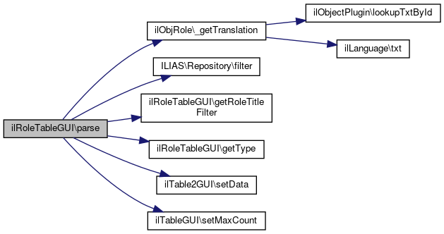 Here is the caller graph for this function:| ilRoleTableGUI::parse | ( | int | $role_folder_id | ) |