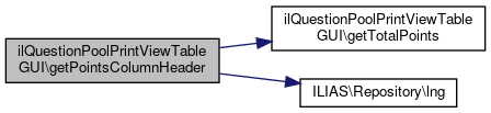 Here is the call graph for this function:| ilQuestionPoolPrintViewTableGUI::getTotalPoints | ( | ) |