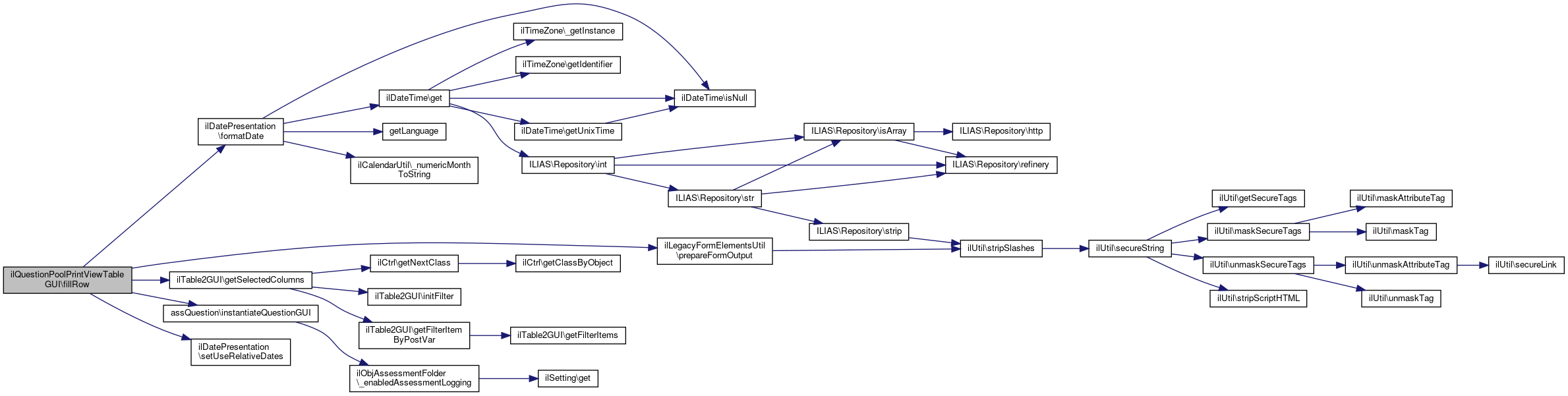 Here is the call graph for this function:| ilQuestionPoolPrintViewTableGUI::fillRow | ( | array | $a_set | ) |