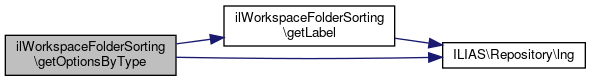 Here is the caller graph for this function:| ilWorkspaceFolderSorting::getOptionsByType | ( | string | $wsp_type, |