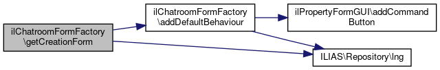 Here is the call graph for this function:| ilChatroomFormFactory::getCreationForm | ( | ) |