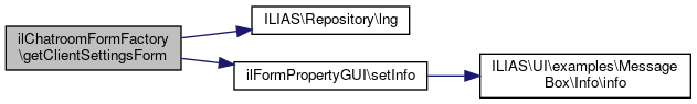 Here is the call graph for this function:| ilChatroomFormFactory::getClientSettingsForm | ( | ) |