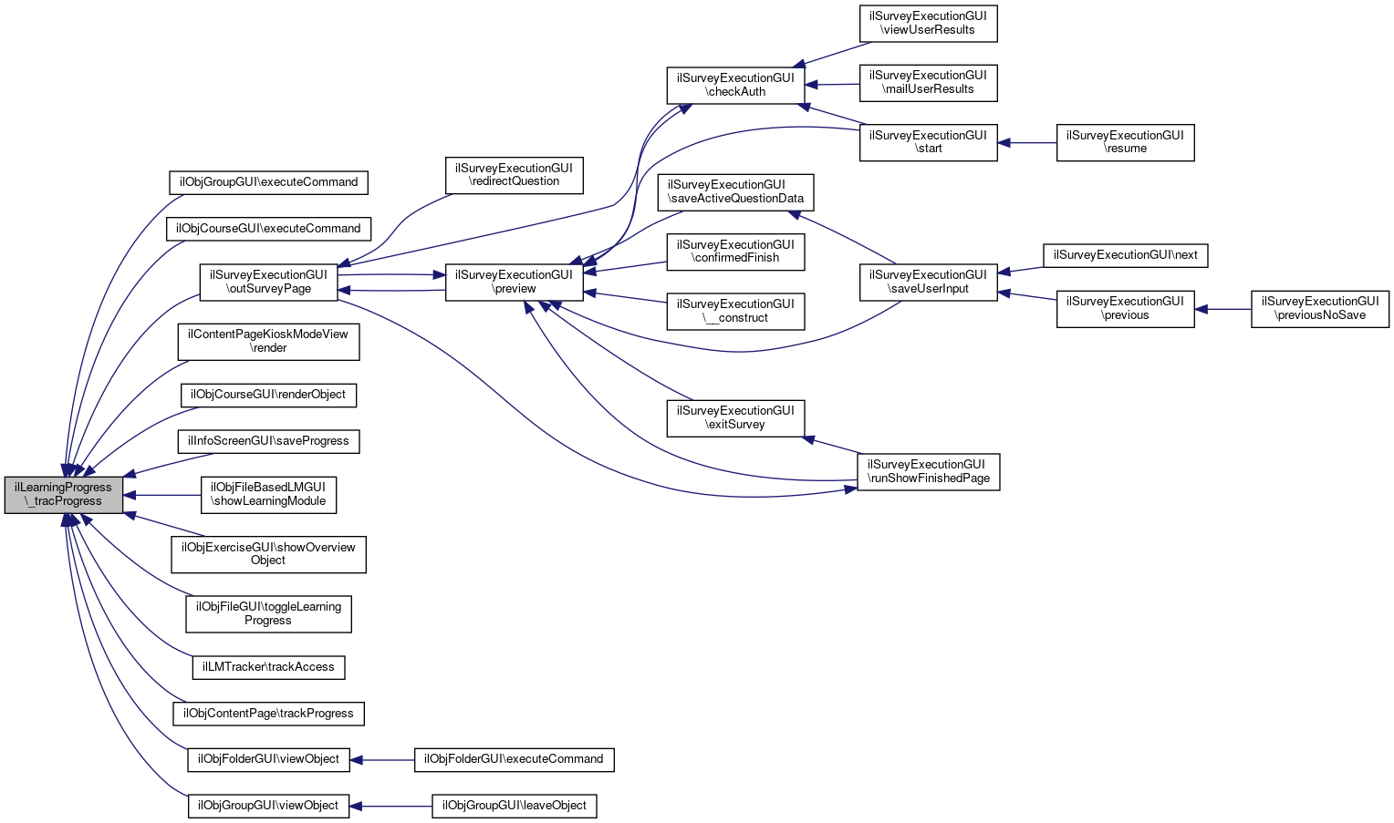 Referenced by ilObjGroupGUI\executeCommand(), ilObjCourseGUI\executeCommand(), ilSurveyExecutionGUI\outSurveyPage(), ilContentPageKioskModeView\render(), ilObjCourseGUI\renderObject(), ilInfoScreenGUI\saveProgress(), ilObjFileBasedLMGUI\showLearningModule(), ilObjExerciseGUI\showOverviewObject(), ilObjFileGUI\toggleLearningProgress(), ilLMTracker\trackAccess(), ilObjContentPage\trackProgress(), ilObjFolderGUI\viewObject(), and ilObjGroupGUI\viewObject().