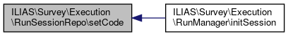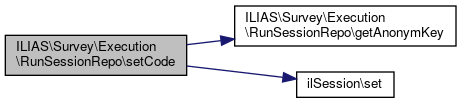 Here is the call graph for this function:| ILIAS\Survey\Execution\RunSessionRepo::setCode | ( | int | $survey_id, |