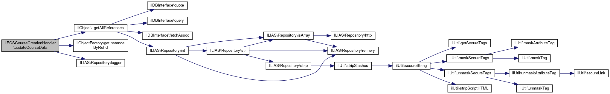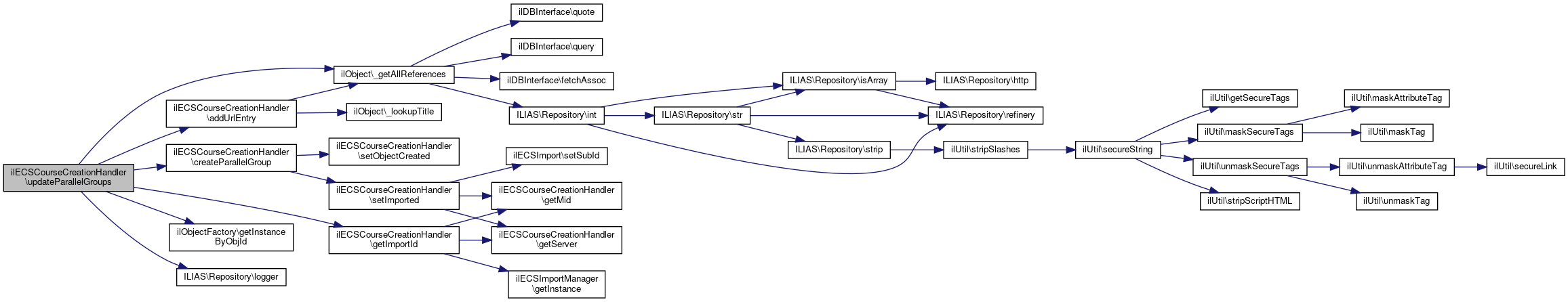 References ilObject\_getAllReferences(), createCourseData(), createCourseReference(), createParallelCourses(), createParallelGroups(), getImportId(), handleCourseUrlUpdate(), ILIAS\Repository\logger(), ilECSMappingUtils\PARALLEL_ALL_COURSES, ilECSMappingUtils\PARALLEL_COURSES_FOR_LECTURERS, ilECSMappingUtils\PARALLEL_GROUPS_IN_COURSE, ilECSMappingUtils\PARALLEL_ONE_COURSE, setImported(), updateCourseData(), updateParallelCourses(), and updateParallelGroups().