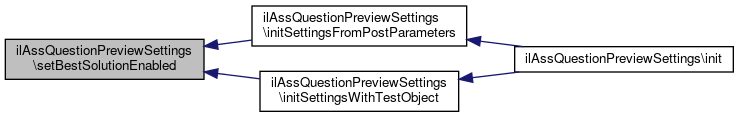 Here is the caller graph for this function:| ilAssQuestionPreviewSettings::setBestSolutionEnabled | ( | $bestSolutionEnabled | ) |