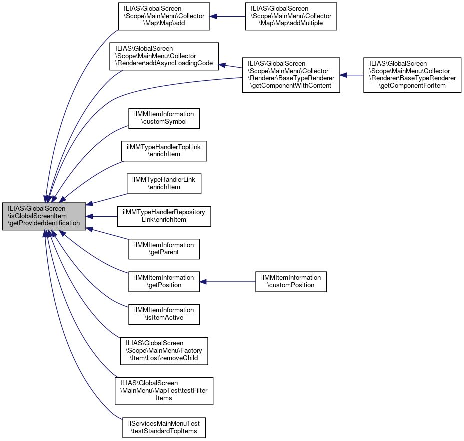 Referenced by ILIAS\GlobalScreen\Scope\MainMenu\Collector\Map\Map\add(), ILIAS\GlobalScreen\Scope\MainMenu\Collector\Renderer\addAsyncLoadingCode(), ilMMItemInformation\customSymbol(), ilMMTypeHandlerTopLink\enrichItem(), ilMMTypeHandlerLink\enrichItem(), ilMMTypeHandlerRepositoryLink\enrichItem(), ILIAS\GlobalScreen\Scope\MainMenu\Collector\Renderer\BaseTypeRenderer\getComponentWithContent(), ilMMItemInformation\getParent(), ilMMItemInformation\getPosition(), ilMMItemInformation\isItemActive(), ILIAS\GlobalScreen\Scope\MainMenu\Factory\Item\Lost\removeChild(), ILIAS\GlobalScreen\MainMenu\MapTest\testFilterItems(), and ilServicesMainMenuTest\testStandardTopItems().