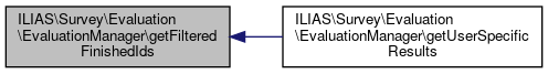 Here is the call graph for this function:| ILIAS\Survey\Evaluation\EvaluationManager::getFilteredFinishedIds | ( | ) |