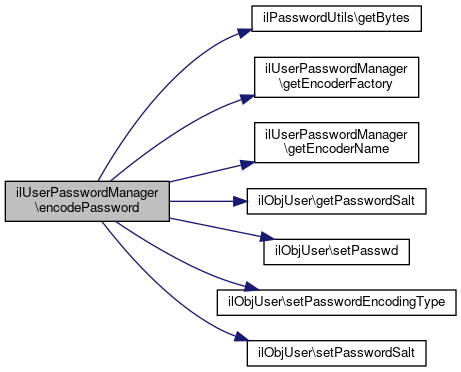 Here is the call graph for this function:| ilUserPasswordManager::encodePassword | ( | ilObjUser | $user, |