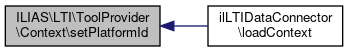 Here is the call graph for this function:| ILIAS\LTI\ToolProvider\Context::setPlatformId | ( | int | $platformId | ) |