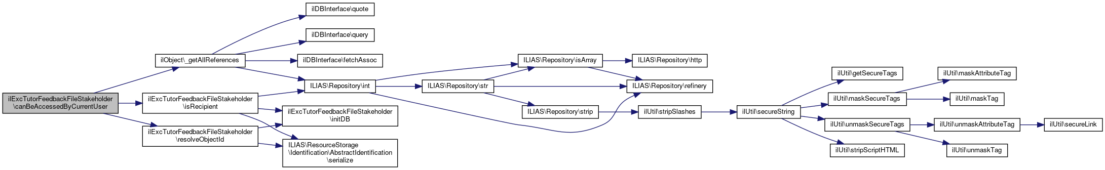 Here is the call graph for this function:| ilExcTutorFeedbackFileStakeholder::canBeAccessedByCurrentUser | ( | ResourceIdentification | $identification | ) |