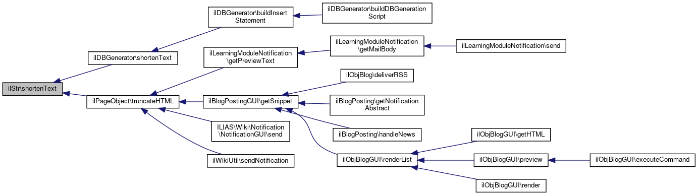 Referenced by ilObjSystemFolder\_getHeaderTitleDescription(), ilObject\_writeDescription(), ilExcel\addSheet(), ilObjSystemFolder\delete(), ilObjWikiGUI\editImportantPagesObject(), ilTree\fetchNodeData(), ilLDAPRoleMappingTableGUI\fillRow(), ilNewsForContextTableGUI\fillRow(), ilAssignmentsTableGUI\fillRow(), ilAdminSubItemsTableGUI\fillRow(), ilPresentationListTableGUI\fillRow(), ilTermListTableGUI\fillRow(), ilBookingReservationsTableGUI\fillRow(), ilECSNodeMappingCmsExplorer\formatObject(), ilECSNodeMappingLocalExplorer\formatObject(), ilPasteIntoMultipleItemsExplorer\formatObject(), ilExplorer\formatObject(), SurveyMatrixQuestionEvaluation\getChart(), ILIAS\Container\Content\ItemSetManager\getCompleteDescriptions(), ilContainer\getCompleteDescriptions(), ilObjLinkResourceListGUI\getDescription(), ilPDSelectedItemsBlockSelectedItemsProvider\getItems(), ilPDSelectedItemsBlockMembershipsProvider\getObjectsByMembership(), ilMailNotification\getObjectTitle(), ilCalendarEntry\getPresentationTitle(), ilLMPresentationGUI\ilLocator(), ilDashboardRecommendedContentGUI\initData(), ilObjWikiGUI\initSettingsForm(), ilSCORMExplorer\insertObject(), ilWikiPageTemplateGUI\listTemplates(), ilChartDataSpider\parseGlobalOptions(), ilLMNavigationRendererGUI\render(), ILIAS\Repository\Provider\RepositoryMainBarProvider\renderLastVisited(), ilMembershipCronNotifications\run(), ilObject\setTitle(), and ilGlossaryTerm\shortenShortText().