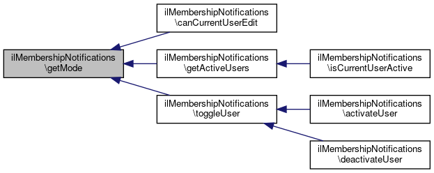 Here is the caller graph for this function:| ilMembershipNotifications::getMode | ( | ) |