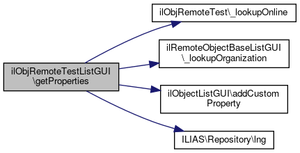 Here is the call graph for this function:| ilObjRemoteTestListGUI::getProperties | ( | ) |