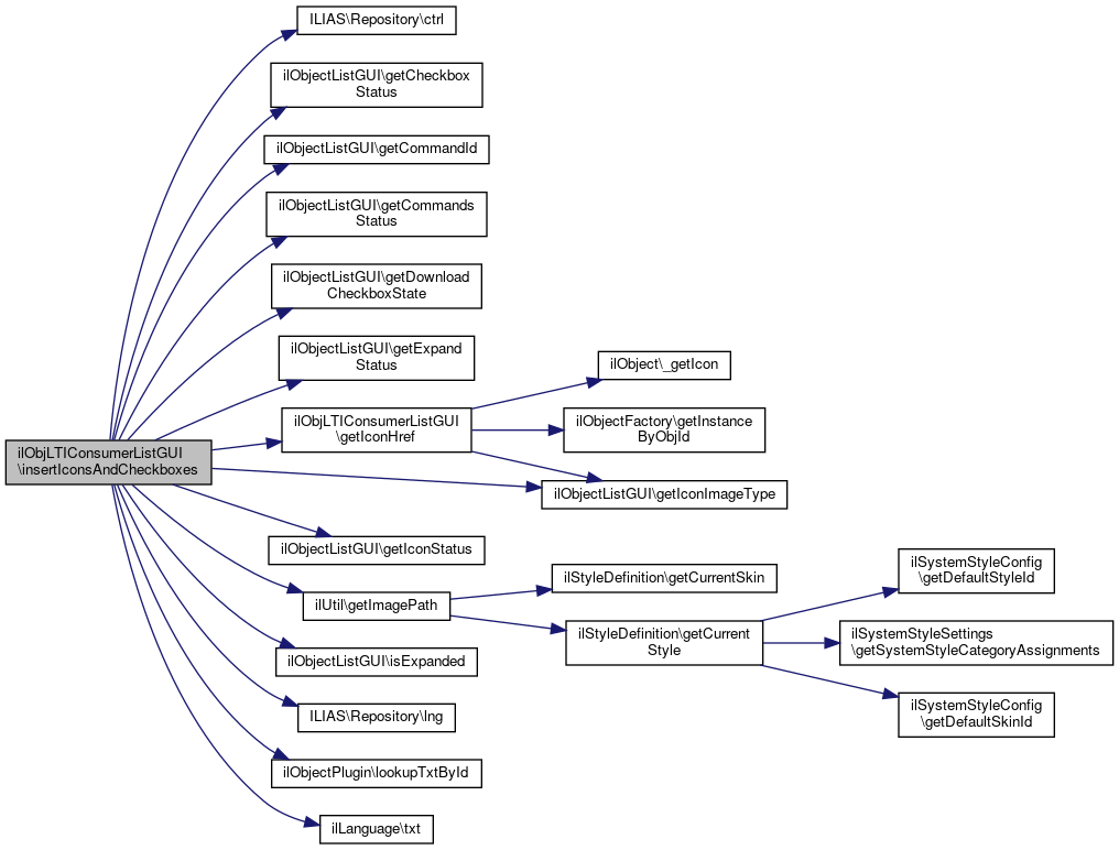 Here is the call graph for this function:| ilObjLTIConsumerListGUI::insertIconsAndCheckboxes | ( | ) |