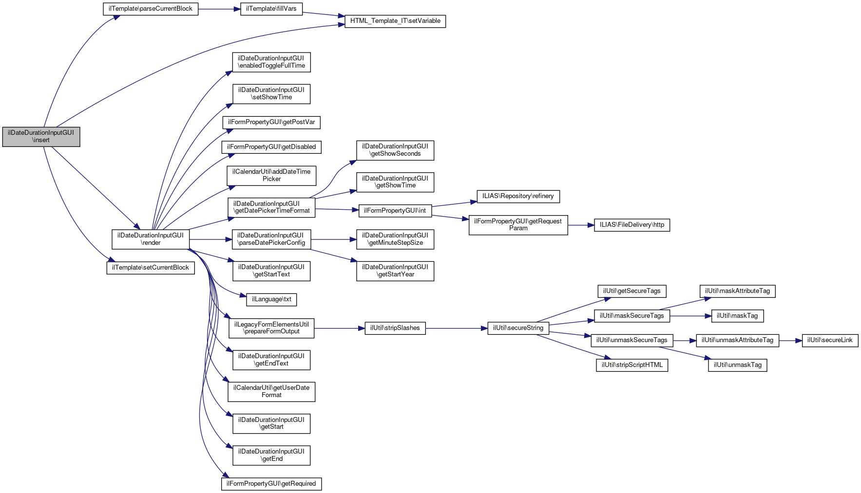 Here is the call graph for this function:| ilDateDurationInputGUI::insert | ( | ilTemplate | $a_tpl | ) |