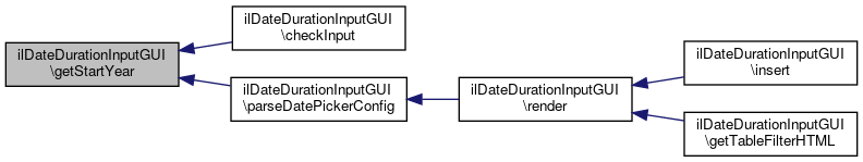 Here is the caller graph for this function:| ilDateDurationInputGUI::getStartYear | ( | ) |