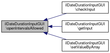 Here is the call graph for this function:| ilDateDurationInputGUI::openIntervalsAllowed | ( | ) |