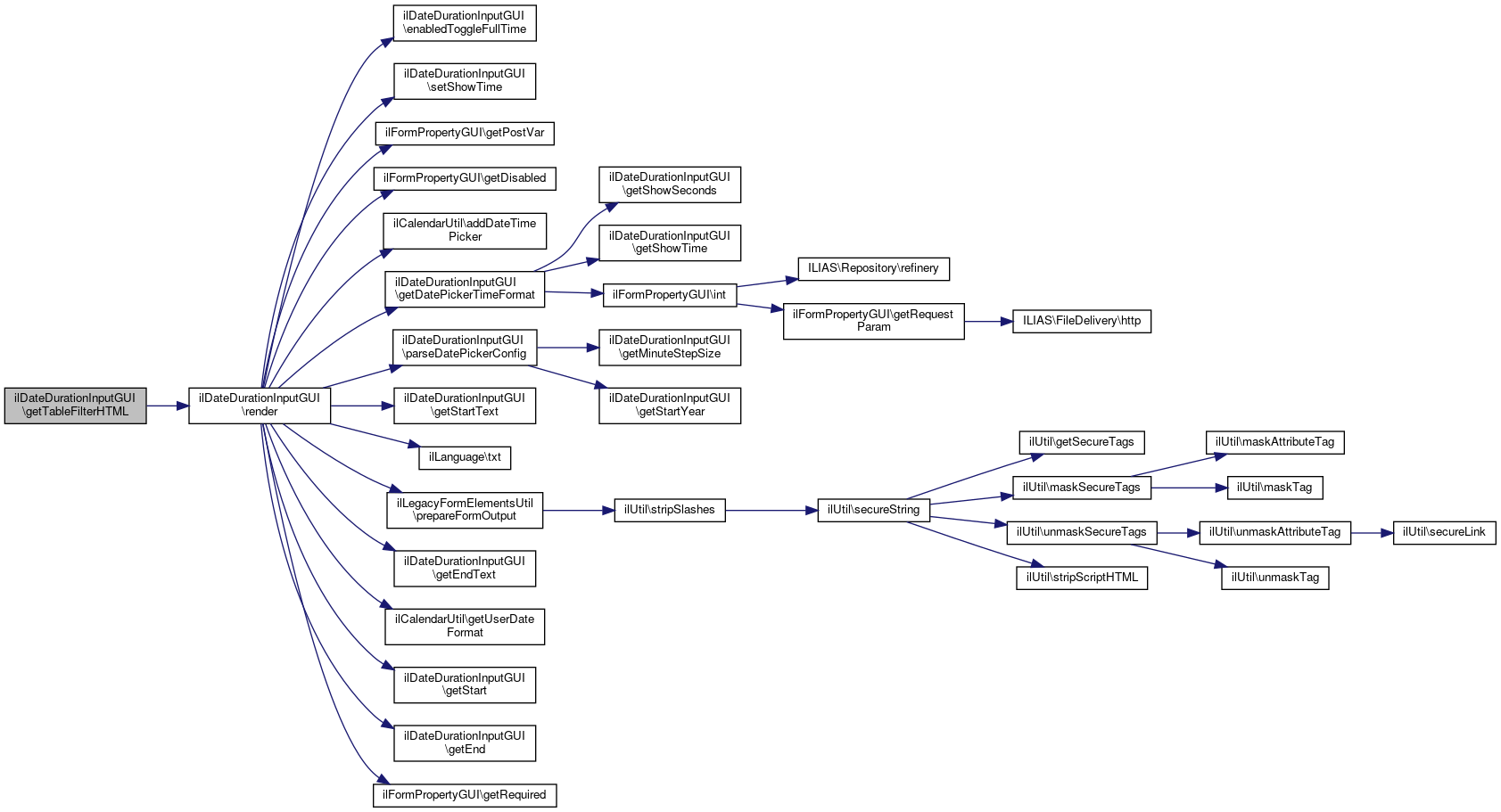 Here is the caller graph for this function:| ilDateDurationInputGUI::getTableFilterHTML | ( | ) |