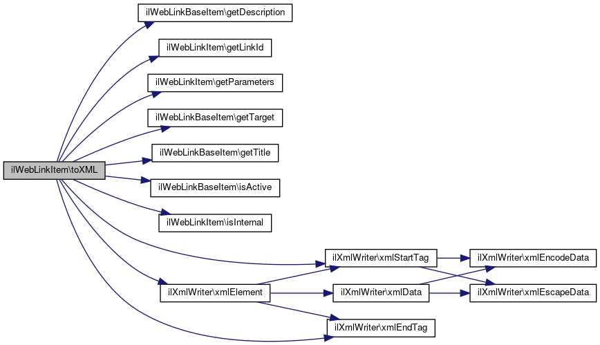 References ilWebLinkBaseItem\getDescription(), getLinkId(), getParameters(), ilWebLinkBaseItem\getTarget(), ilWebLinkBaseItem\getTitle(), ilWebLinkBaseItem\isActive(), isInternal(), ilXmlWriter\xmlElement(), ilXmlWriter\xmlEndTag(), and ilXmlWriter\xmlStartTag().